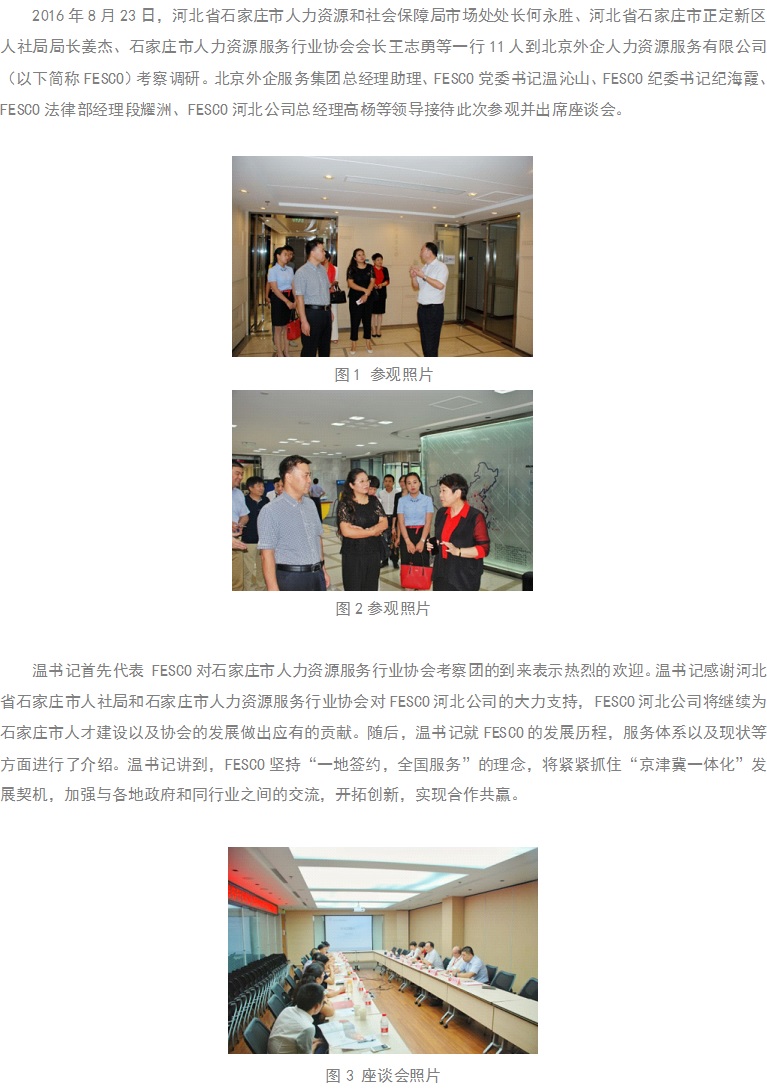 【公司新闻】2016年8月23日石家庄市人力资源服务行业来FESCO考察调研
