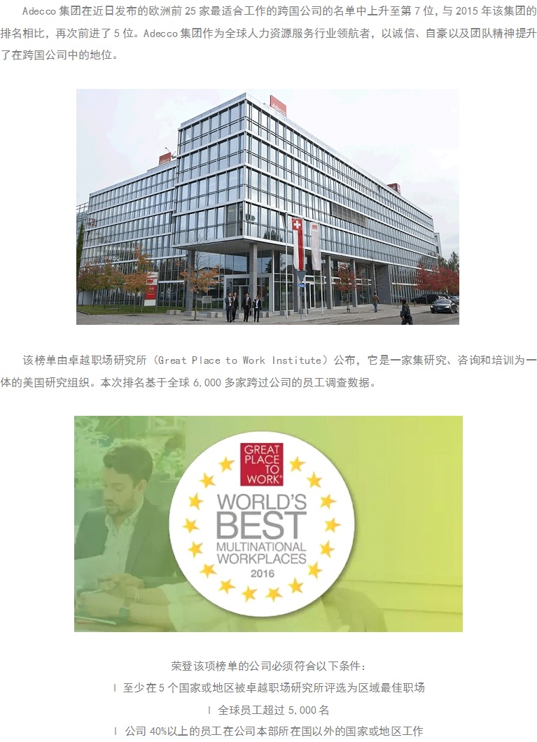 最适合工作的跨国企业,Adecco集团名列第7!